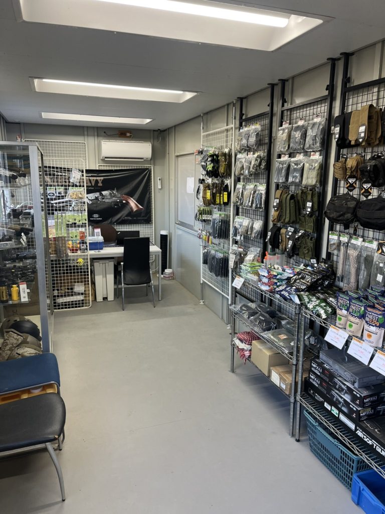 △小江戸ホビーH.E.A.D.S川越。サバゲーフィールドと直結しているため、プレイ中にカスタムやアイテム購入が可能!コンパクトな店内はまるで作戦指令室!